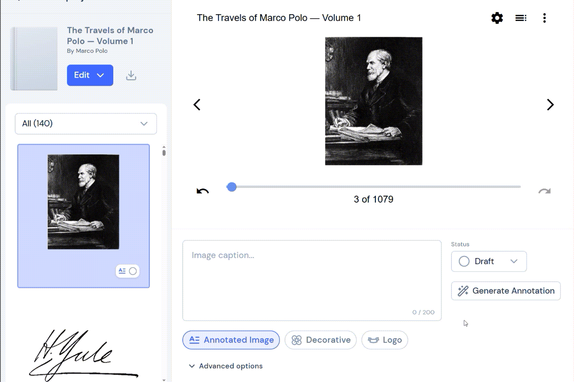 Upload your EPUB and find all your images automatically organized in a clear and intuitive dashboard.